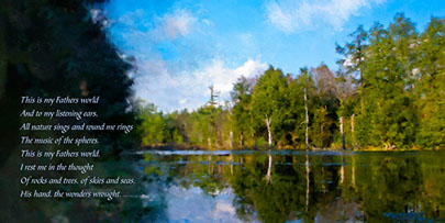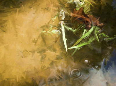 In the still morning light the pools along the creek lie silent and tranquil. Suddenly a dew drop from an overhanging branch radiates across the surface of the water.